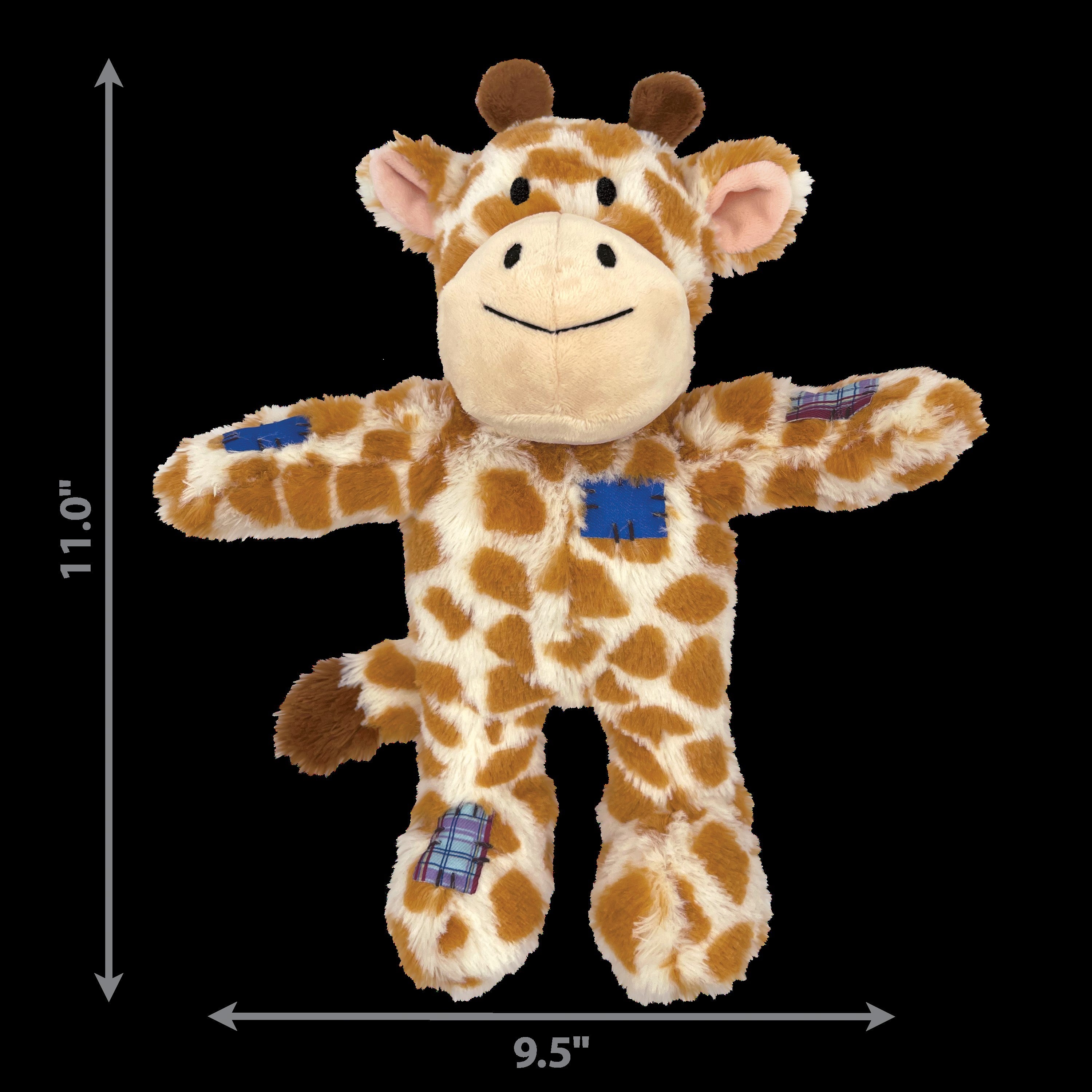 KONG Wild Knots Giraffe is soft and cuddly on the outside yet durable and strong on the inside thanks to a rope skeleton that satisfies dogs’ natural instincts. Squeaks extend the safari while minimal stuffing means less mess. Plush body is great for snuggling on the savannah or sofa. Soft and cuddly on the outside yet durable and strong on the inside, the internal rope skeleton satisfies dogs’ natural instincts while squeaking to extend the safari. Minimal stuffing means less mess. Internal knotted rope skeleton satisfies dogs'; natural instincts. Minimal stuffing for less mess. Soft yet durable for long-lasting fun. Squeaks to prolong play. Soft plush toy great for snuggling. Designed for light/moderate chewing. For tough chew sessions, try KONG rubber toys. Supervised use only. Remove all packaging. Discontinue use if damaged.
