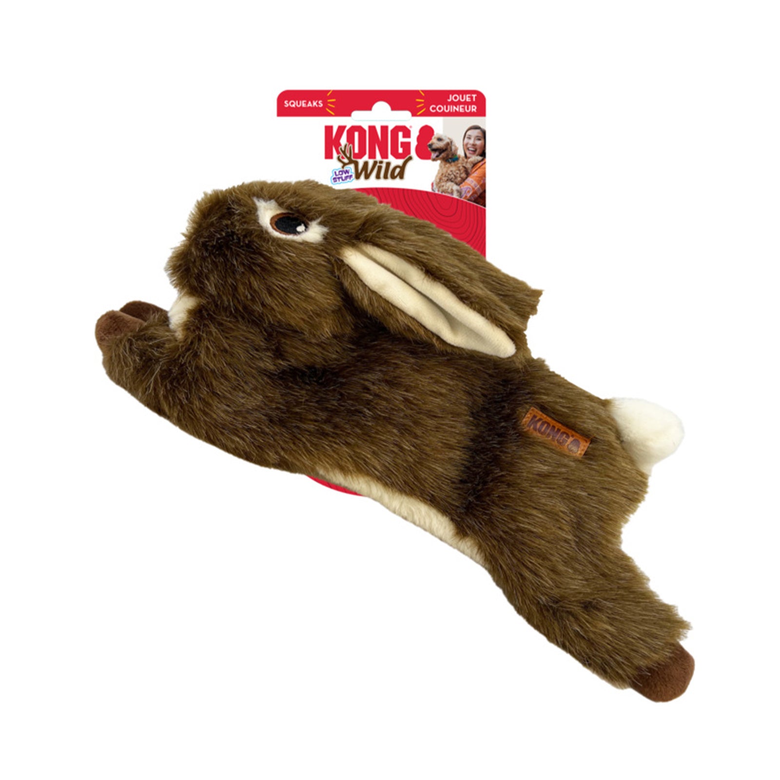 KONG Wild Low Stuff Rabbit Medium Plush Squeaky Toy For Dogs Provides Engaging Play With Minimal Stuffing And A Fun Squeak