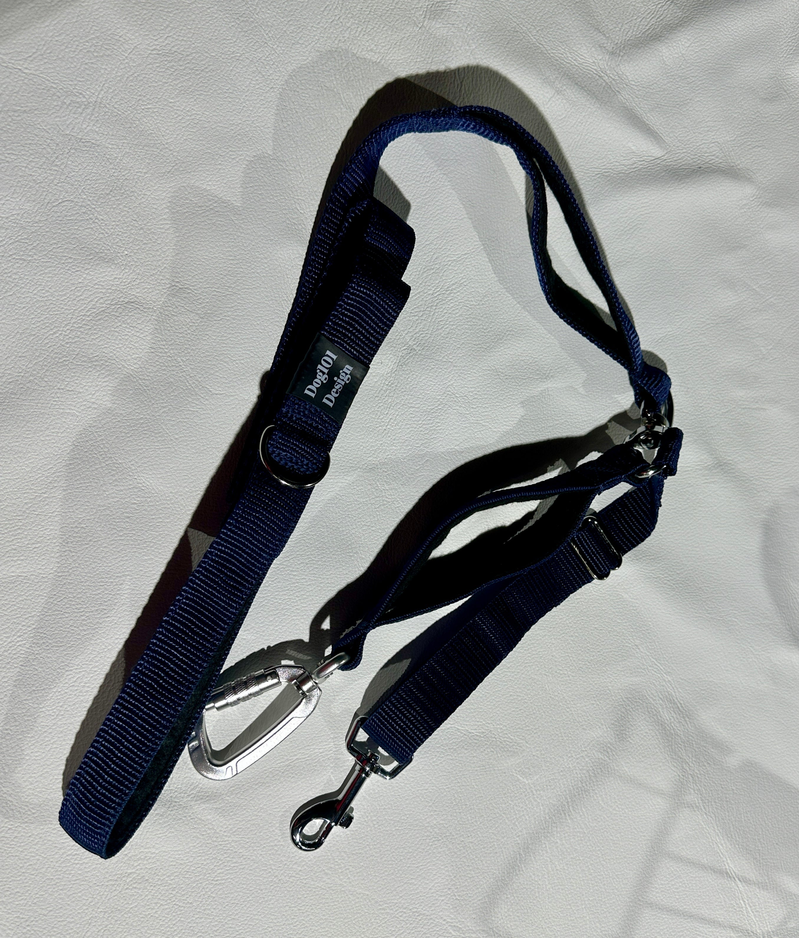 Our Dog101 Design reactive lead is designed to give you control and help when you need it.  The main clip is a screw locking clip so you cannot accidentally undo it.  It is connected to a swivel so the first point cannot twist at the halter or training device.  There is a second attachment which can than be shortened or extended to reach harnesses or collars so that you always have 2 different points of connection.  There is the first felt lined handle close to the end for large dogs.  From here a swivel is attached just in case your dog loses it and spins around so the lead does not wrap around your hand.  Above this is a felt lined handle so you can get low down control on the lead.  At the end of the lead is a D ring and another felt lined handle.  These are made in Brisbane and designed based on how we train reactive dogs for clients to get control quickly and safely, or for those who want the extra safety of being extra connected. 1.5M long or 0.9M Long