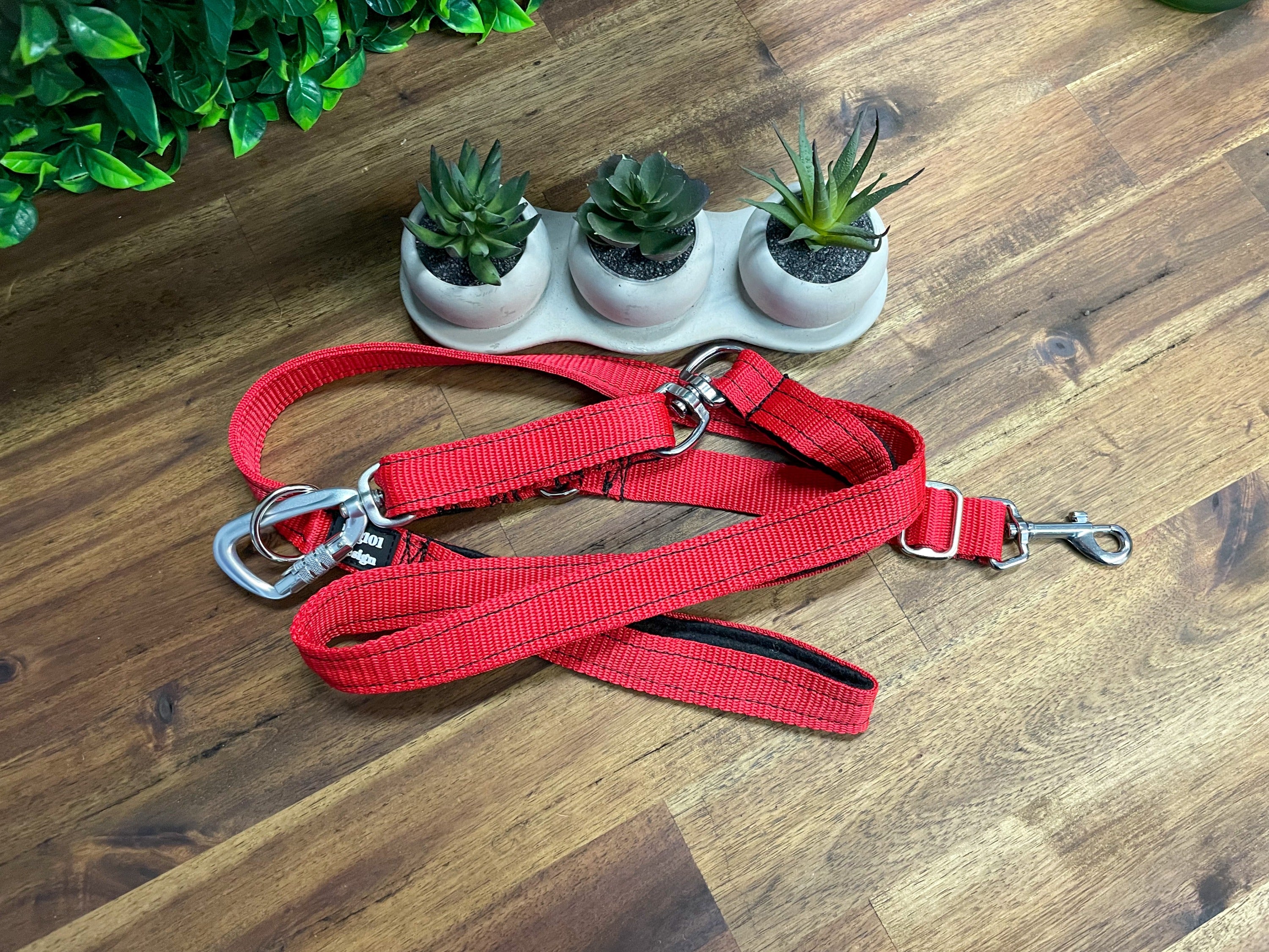 Our Dog101Design Reactive Leads give you control when you need it. Designed and made by our team right here in Brisbane, our reactive leads were developed from years of experience training reactive dogs and helping our clients get control of their dogs quickly and safely. Designed to be used on two separate attachment points (usually a halter and a harness), they are also great for those who want the extra safety of being extra connected.