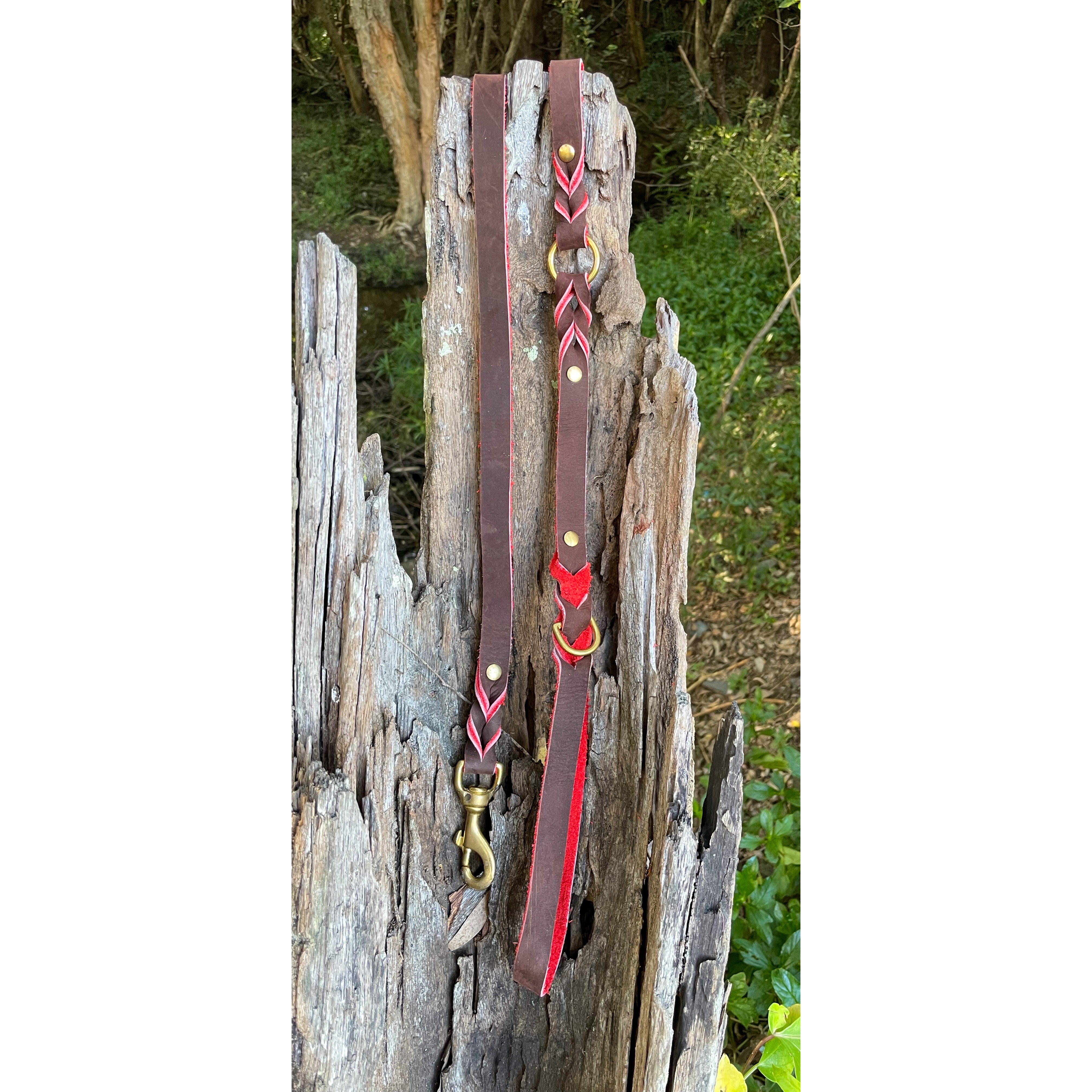 Red Two Tone Double Braid Leather Lead