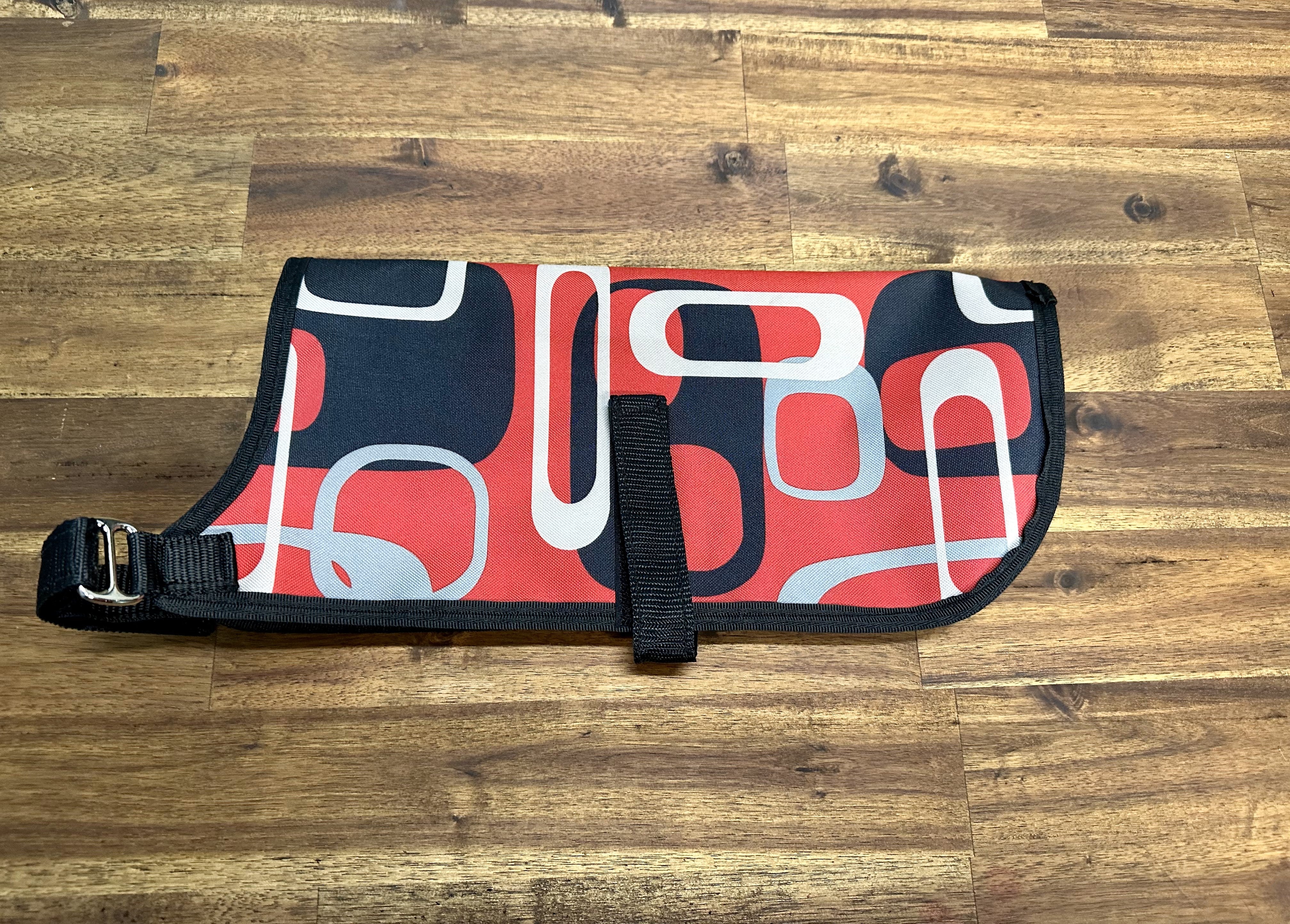 These winter jackets are made by us here in Brisbane from water-proof material to keep your best mate dry and warm.  They are lined with a soft felt on the inside for both warmth and durability.  They come in a variety of sizes, and we can custom make so you get a perfect fit!