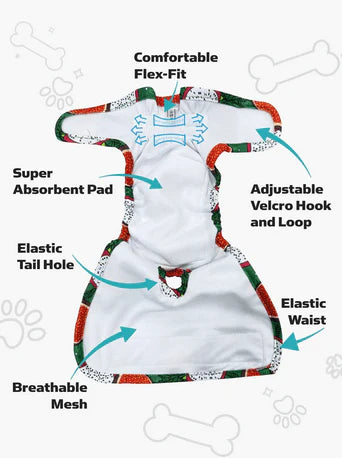 Customizable Fit: Many washable dog nappies come with adjustable straps or Velcro, allowing for a snug, secure fit that prevents leaks. This can be especially important for dogs that are restless or move around a lot.