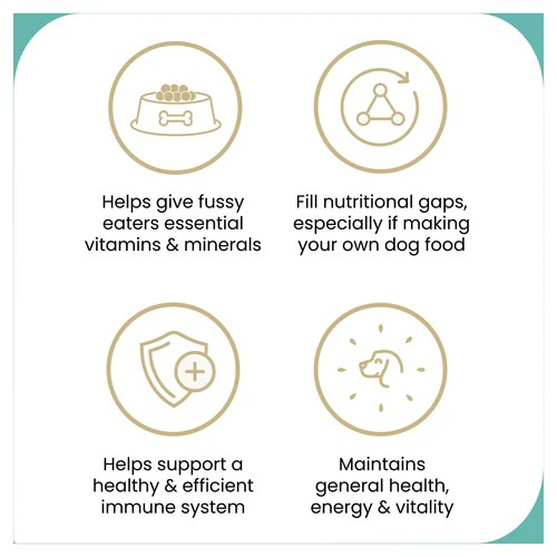 Contains Inulin (Prebiotic) and Omega-3 fatty acids, to enhance dogs’ immune response and promote a healthy microbiome.